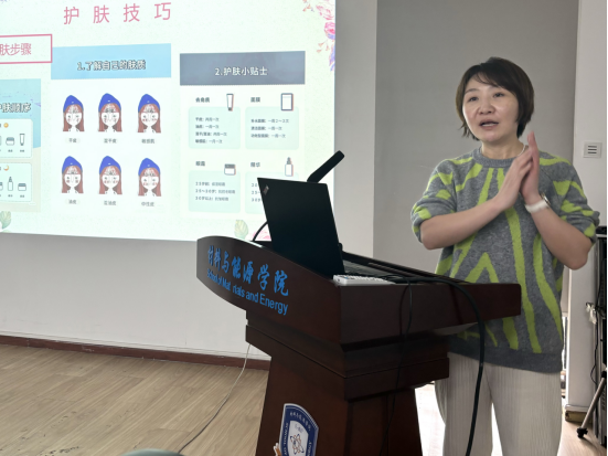 美妆课上,学院赵麟老师向大家讲解了如何简单快速地化简妆,并为大家演示上妆手法及技巧。