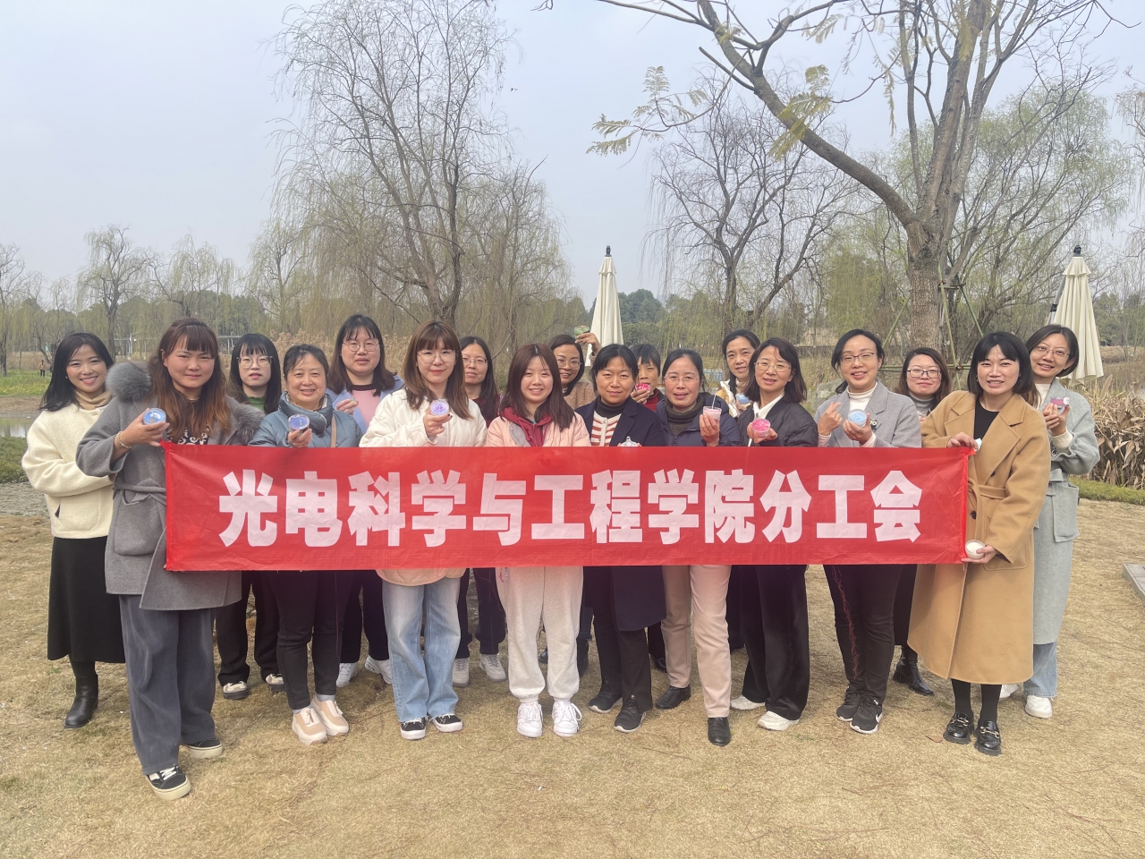 阳春三月,春暖花开,第114个国际“三八“妇女节如期而至。为增进学院女教职工之间的交流,丰富业余生活,提升生活品位,光电学院分工会组织30余名女教职工走进清水河艺术公园开展了“温情三月·花漾女神”活动。校工会常务副主席杨恩华、女工部部长胡丽娟,学院党委书记张晓东莅临现场与女教师们一起欢度节日。