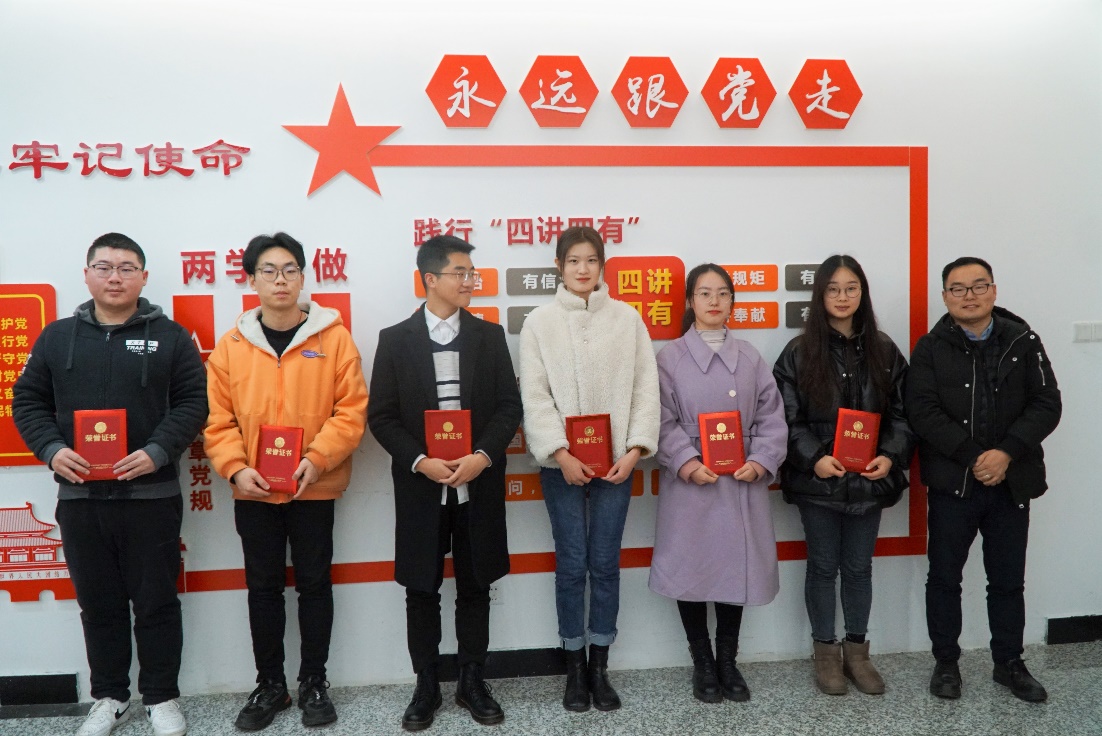 2021年度材料学院共有28名同学获得新威尔奖学金,李翰超和简贤、刘一凡老师分别为获奖学生颁奖。