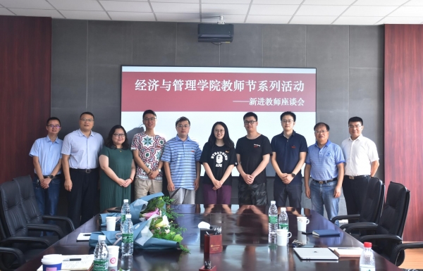 9月10日,在第36个教师节来临之际,经济与管理学院分别举行新晋职称教师座谈会和新进教师座谈会,马永开院长、党委龚漪书记、李平副院长、肖延高副院长、学院新晋职称教师胡本勇、李光旭、陆炜;新进教师谯涌川、李睿、钟颖、罗政、李铁参加座谈。