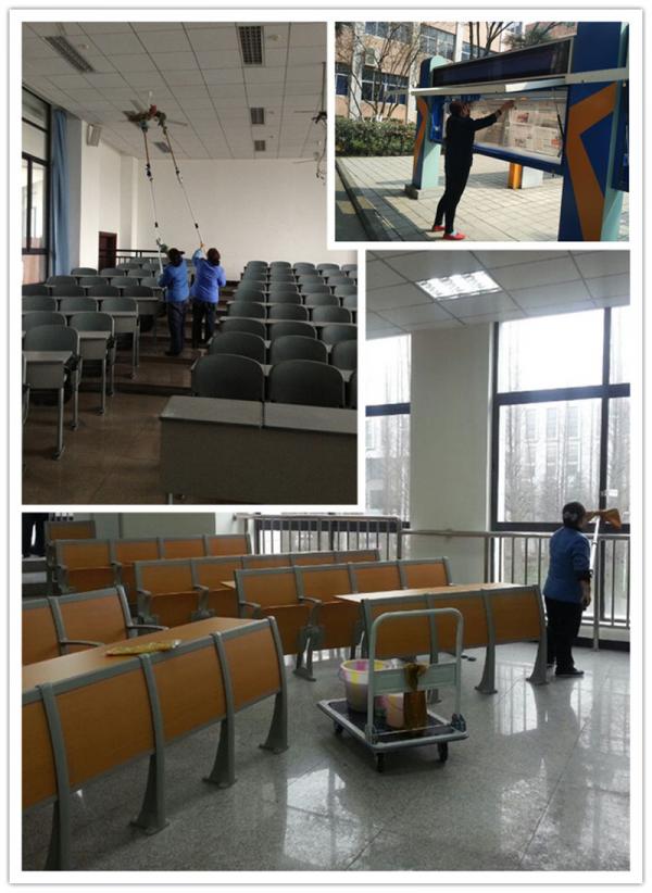 此外,物业服务中心还利用寒假,联系专业清洁公司的“Spider-Man”开展高空清洗作业,对清水河校区主楼全封闭玻璃屋顶、封闭区域走廊玻璃进行彻底清洗。