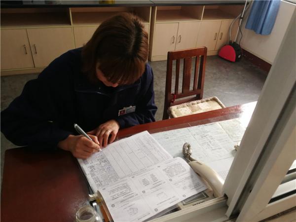 认真填写记录的张辉珍