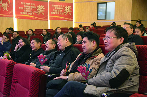 在各大奖项的颁发之间,穿插了学院教师及家属带来的精彩节目。亲子互动游戏、《满腹经纶》相声节目,歌曲串烧《真心英雄》,各项目、各系、机关教师代表带来的歌曲连唱《合家欢》,院领导及教师合唱歌曲《众人划桨开大船》等节目,精彩连连。小礼品抽奖环节为学院教师送上新春祝福。