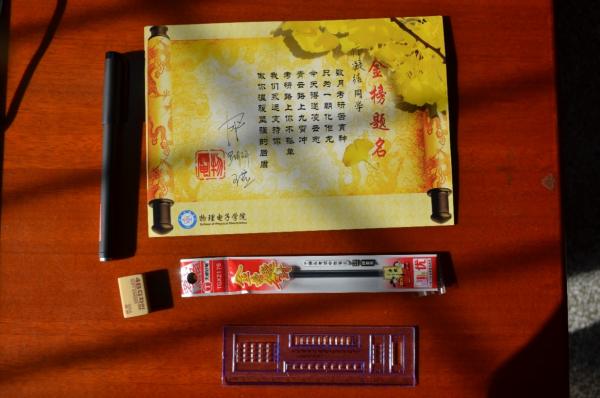 学院为每个考研同学专门定制的小礼物。一纸独一无二的金榜题名,一套考研复习必需的标准文具。亲手写下的签名,更多是对大家的祝愿,学院一直在背后支持着同学们。