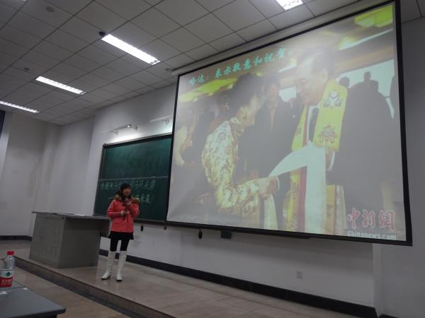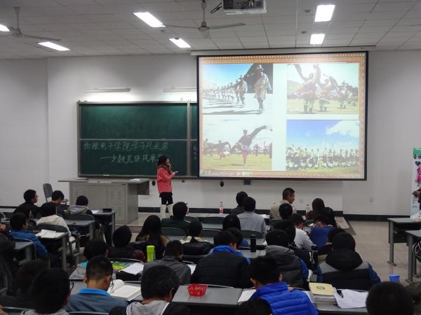 一段民族风情展示视频拉开了本次风采展的序幕。来自学院2014级8个不同民族的少数民族代表分别上台通过PPT、视频和现场展示的方式介绍展示本民族的风土人情、文化特点。