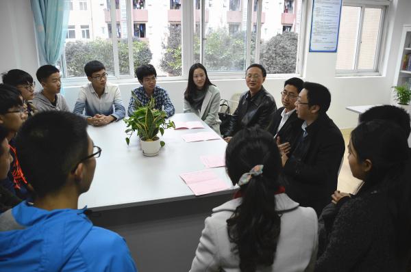 在师生座谈会上,武佳、张军分别对学院寝室文化活动和学生自助服务中心的建设给予肯定,并针对事务办理和活动形式等具体问题提出建议。自助服务中心的同学们对学校和学院搭建的平台表示感谢,向各位领导和老师介绍了自助服务中心的运行情况和接下来的工作计划。