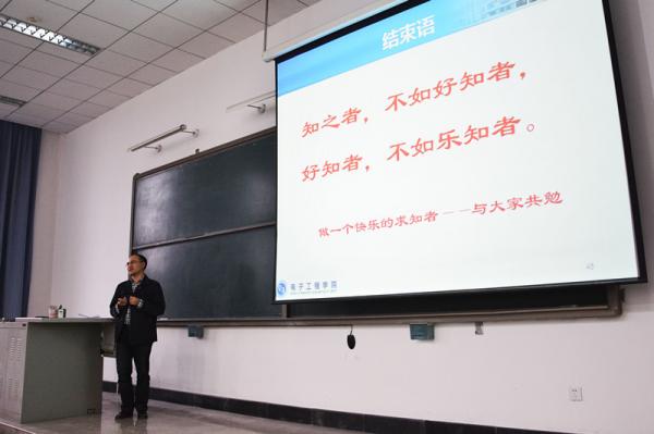 来自电子工程系的班导师以“前途光明的事业”“眼光比能力更重要”“为成功做准备”为主题与同学们进行互动交流。来自电子实验中心的班导师们详细介绍了同学们最关心的电子设计大赛赛制安排以及历年来电工学院取得的优异成绩。