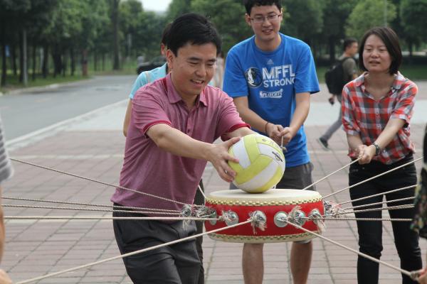 趣味运动会共分为鼓动人心、履带战车、三人四足跑三个项目,现场观众们摇旗呐喊,激发了师生们的斗志。在传统项目“鼓动人心”中,师生们配合默契,再次刷新纪录。比赛的同时,大家也不忘互相帮助,发扬“友谊第一、比赛第二”的精神,在“三人四足跑”比赛中,师生齐心协力,双方啦啦队热情高涨,加油声、呐喊声此起彼伏,将活动推向了高潮。