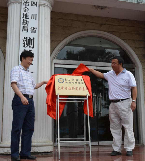 双方代表共同签署共建大学生校外实习基地协议。钱云光和刘怀彬共同为电子科技大学资源与环境学院校外实习基地揭牌。四川省冶金地质勘查局测绘工程大队成为资环学院首个校外大学生专业实习基地。