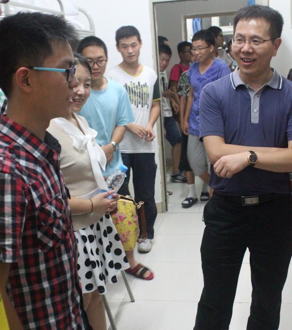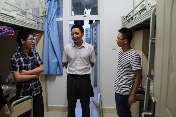 30日晚,学院党委书记胡俊、院长樊勇、副院长孔令讲深入寝室,与学院2014级本科生、研究生亲切交谈,给新生们介绍学院概况,叮嘱大家要随时与导师、辅导员、导生保持联系,同学之间要学会互帮互助,希望大家早日适应新的学习生活,提早做好大学规划,还一一解答了大家的疑问。