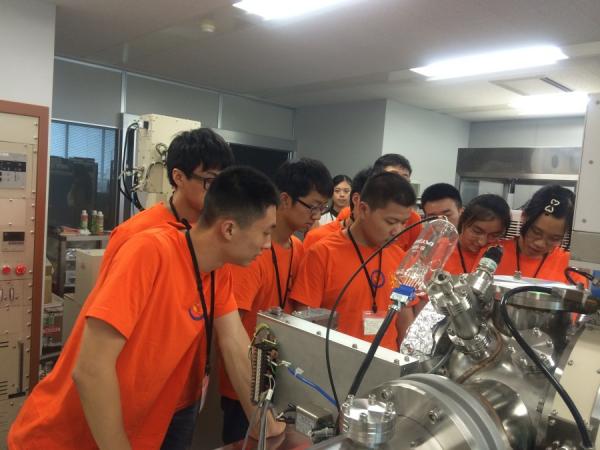 交流团还赴日本仙台,在日本东北大学(Tohoku University)进行了为期2天的参观交流。除了接受了专业知识的报告和中国留学生的留学经历分享之外,同学们还兴致盎然的换上了洁净服,深入参观了田中秀吉教授(Tanaka)的实验室,并与来自丰田(Toyota)公司的工作人员一起进入实验室,切身感受了先进的实验设备。