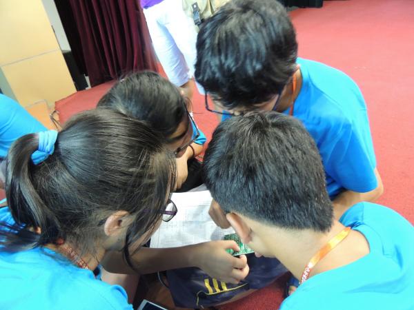 拿到制作机器人的元件后,营员们进行了热烈的讨论。同学们均对巡线机器人表现出极大的热情,来自茂县中学的小营员说,“太激动了,没想到我有机会亲手制作机器人”。