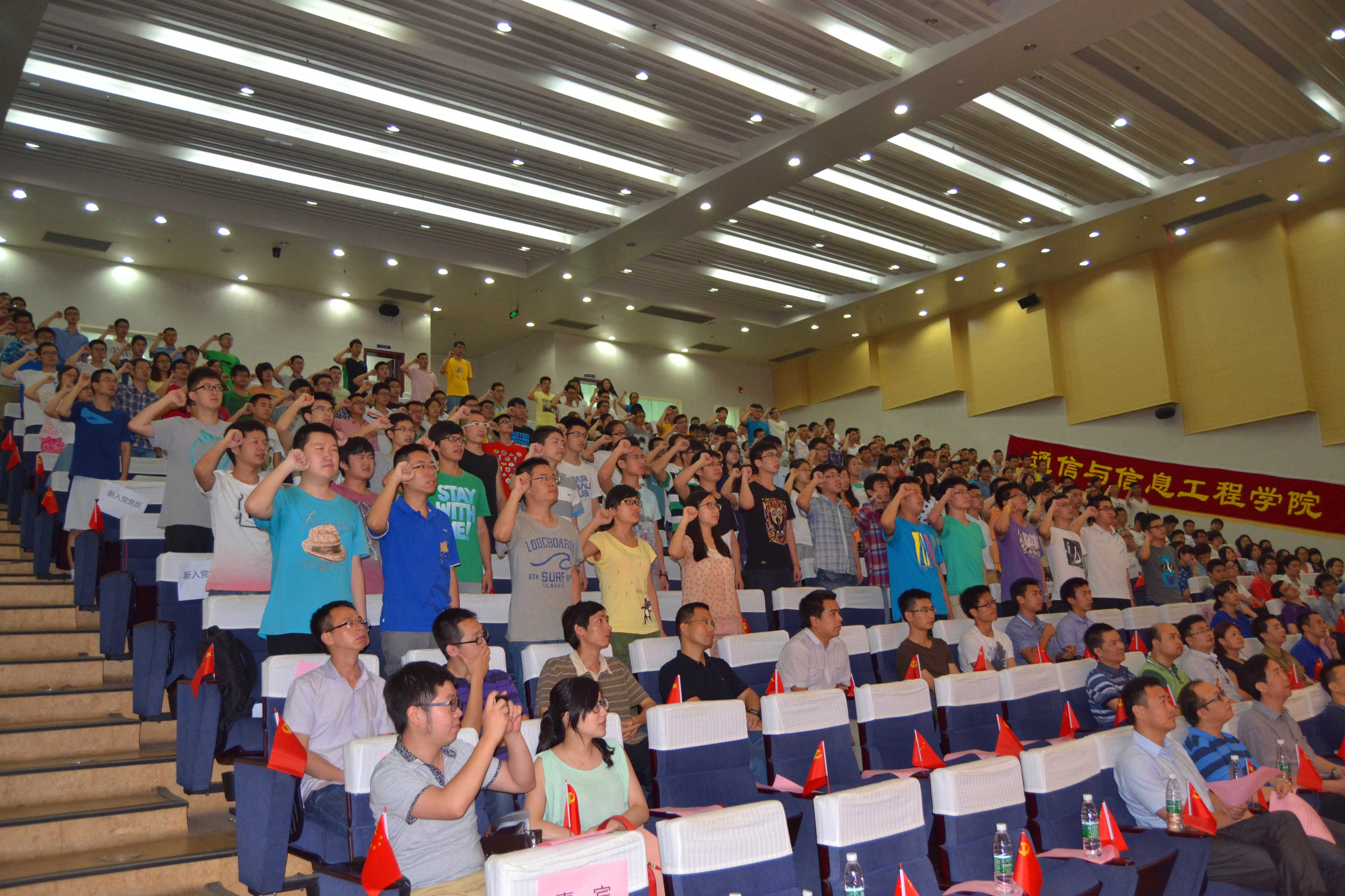 6月19日,党委举行“致敬党旗,圆梦青春”2013-2014年度“七·一”表彰暨党员宣誓大会。院党委书记袁正希,副书记郭志勇,校党委部门相关老师,全体党委委员、支部书记、新入党党员、毕业生党员参会。会上,袁正希对学院党委过去一年的工作和成绩进行了总结和肯定,要求各位党员时刻牢记人才培养使命,将国家梦想和个人抱负更加紧密地结合在一起,在教学、科研、学习中起到模范带头作用。郭志勇宣读表彰决议,对优秀共产党员、先进党支部及十佳党日活动进行表彰,受表彰的优秀党支部进行现场展示。最后,新入党党员及毕业生党员进行宣誓,表达了对党的忠诚以及对党员责任的践行。