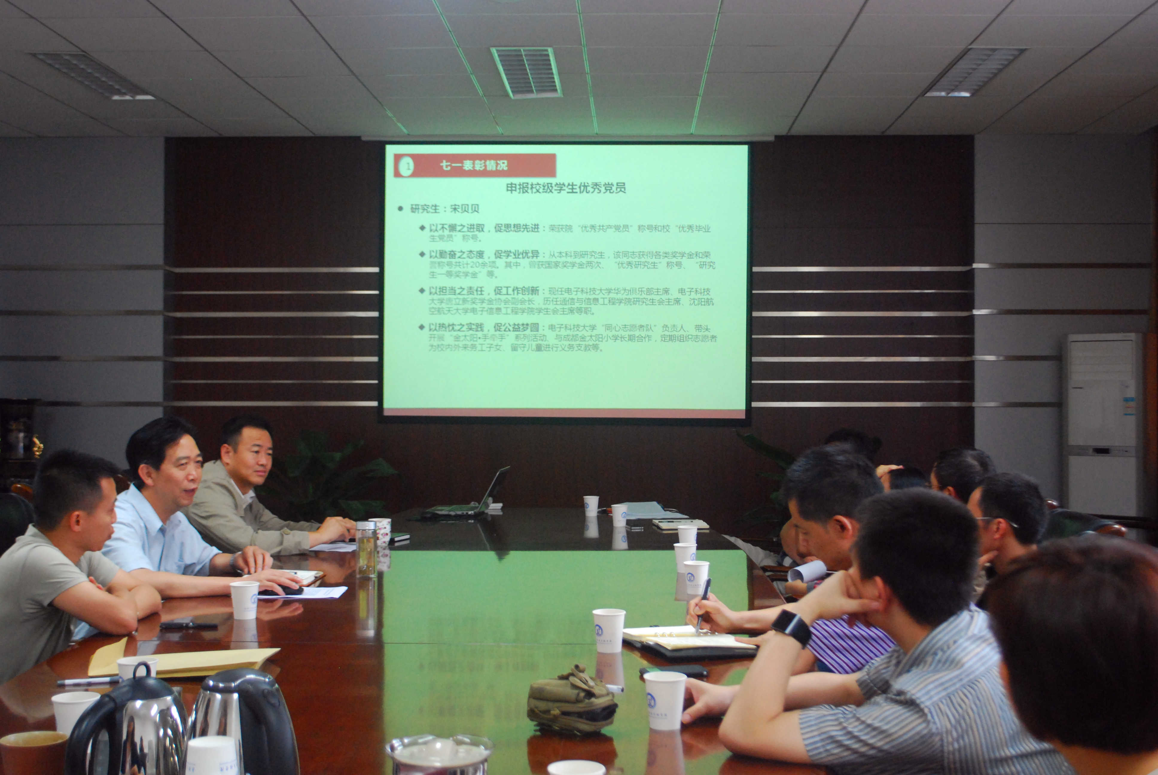 6月13日,通信学院(通信抗干扰技术国家级重点实验室)召开党委扩大会议,全体党委委员、教工党支部书记参会。会议总结了本学期党委重要工作,对“七·一表彰”的相关事项进行通报、讨论和表决,并对本学期发展、转正的党员进行了讨论与审批,对学院特色的“十佳党日”活动进行了评审。