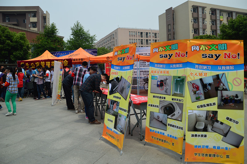 5月7日中午,学生宿舍管理中心在清水河校区银桦餐厅门口开展第三届向宿舍不文明行为说“NO”文化活动。