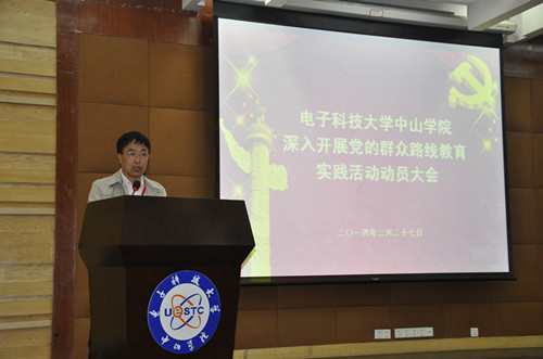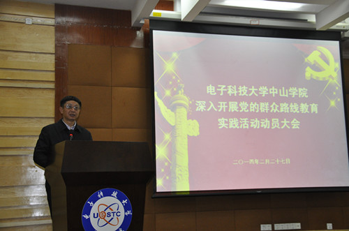 中山学院将从2014年2月到9月,在全院共产党员中开展党的群众路线教育实践活动。学院纪委书记、副院长叶立新宣读《电子科技大学中山学院深入开展党的群众路线教育实践活动实施方案》,从指导思想和总体要求、重点任务和基本原则、参加教育实践活动的范围、方法步骤和时间安排、组织领导和工作要求等方面对教育实践活动作了布置。