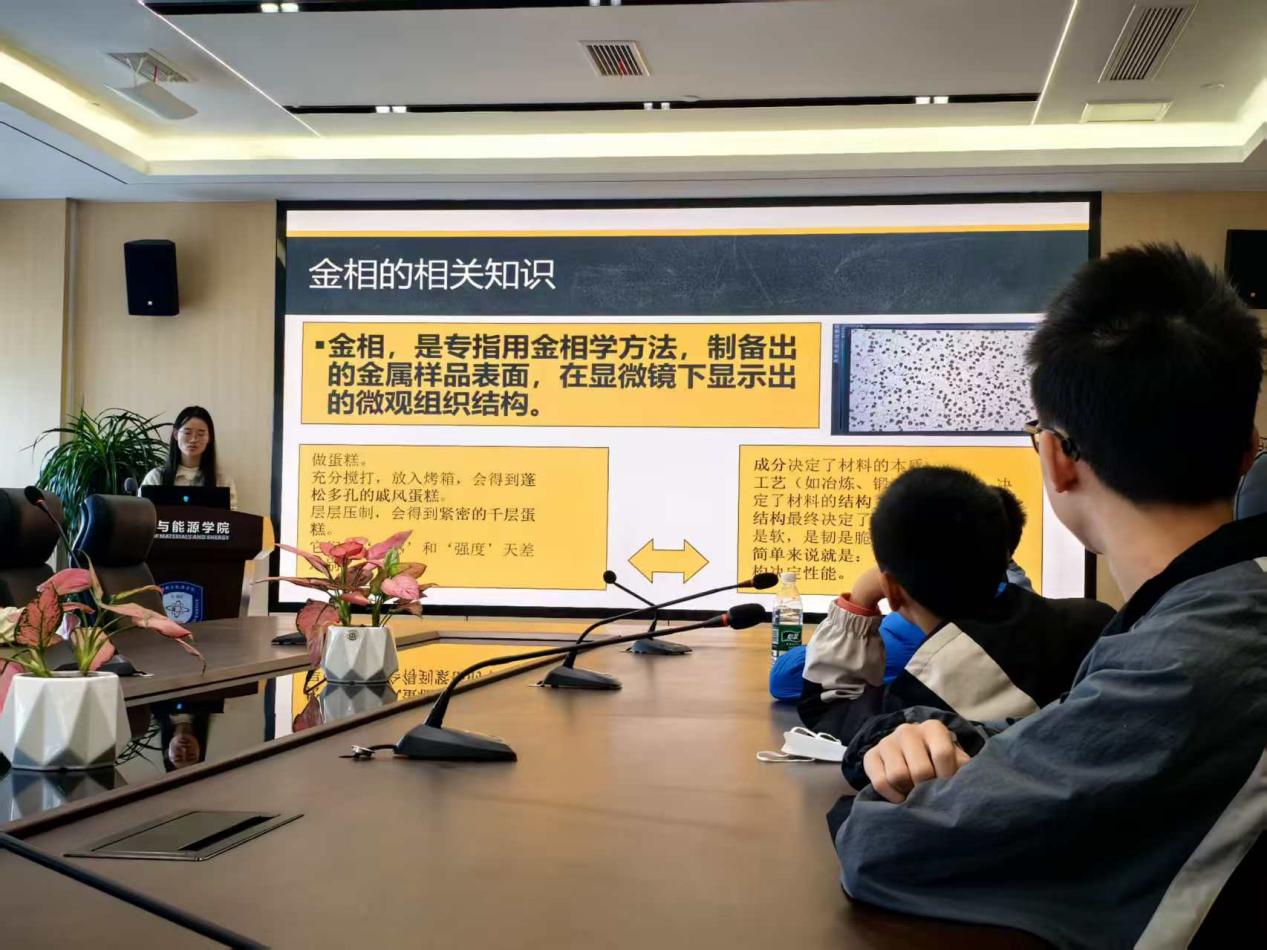 活动伊始,源梦志愿服务队队长王怡帆为孩子们带来一场生动有趣的金相知识启蒙课。她以通俗易懂的语言,深入浅出地讲解了“什么是金相”“为何要研究金相”以及“如何观察金相”等内容,带领孩子们叩开材料微观世界的大门,点燃他们心中对科学的好奇火种。