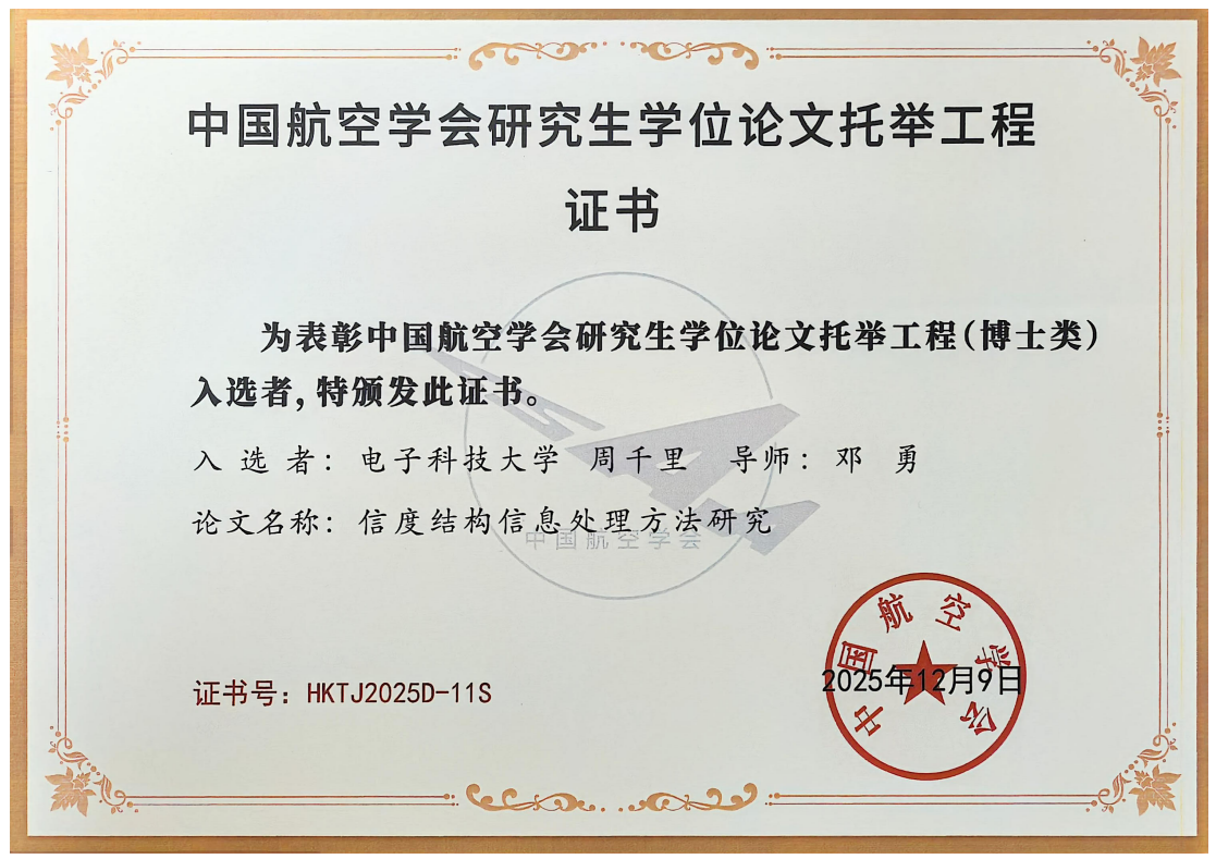 博士生学位论文入选“中国航空学会研究生学位论文托举工程”