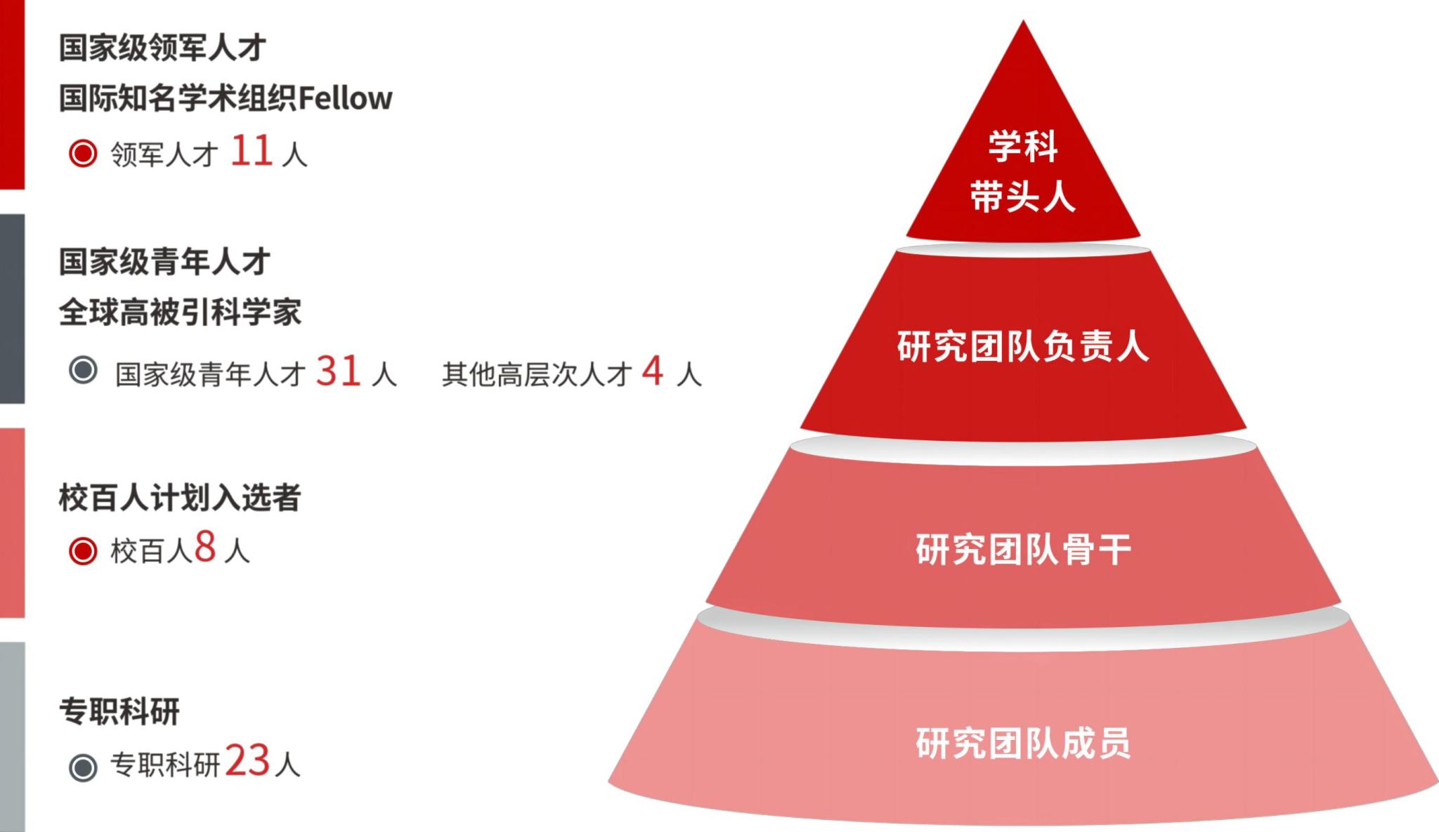 厚植人才沃土,人才引育成效显著。引育领军人才10人、青年人才21人,实现 “四青” 人才全覆盖。师资队伍结构持续优化,专任教师中全职领军人才占比20%,国家级人才占比75%;90%以上具有海外科研经历,45岁以下青年教师占比87%;10%国家级人才跨学院开展交叉研究;全职外籍师资规模位居全校首位。目前,基础院已建成一支层次高、国际化、活力足、交叉多的高水平国际化师资队伍,为基础研究和交叉研究发展夯实了人才基础。