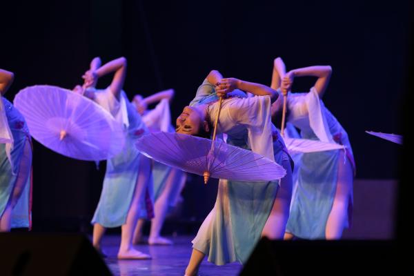 演出分为东方韵、西方情上下两个篇章。在上篇中,一曲唯美的独唱《夜空中最亮的星》为晚会拉开帷幕;合唱《川江号子》作为非物质文化遗产传承之作,歌曲高亢嘹亮动人至深;女子群舞《雨巷》中撑着油纸伞的少女婉约却不失活泼;传统的民乐合奏《十面埋伏》与新潮的荧光舞蹈《炫动成电》相结合,碰撞出激情的火花,带给观众前所未有的体验;原创小合唱《希望的彩虹》、舞蹈《羌寨欢歌》将民族特色展现得淋漓尽致,热情欢快的曲调不断感染着台下观众。
