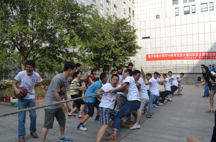 在拔河比赛中,电子科学技术研究院获得了第一名,航空航天学院获得了第二名,能源科学与工程学院和资源与环境工程学院并列第三名。