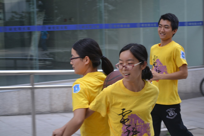 第三项背球接力比赛是采取返程接力的形式,两人背球手挽手背靠背横向移动,用时最短的队伍获胜。电子科学技术研究院以46秒51的成绩获得第一名。