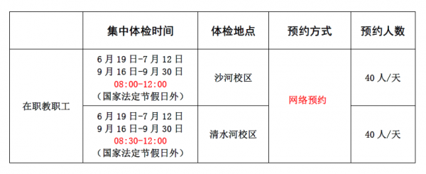 9.沙河校区教职工胸部CT检查项目安排在清水河校医院完成。