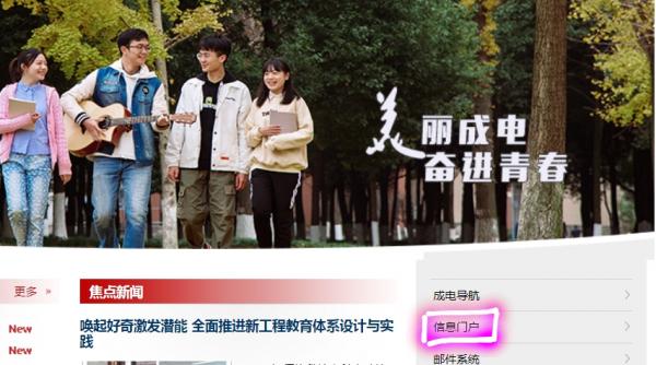 1.登录电子科技大学官网https://www.uestc.edu.cn/找到信息门户按钮: