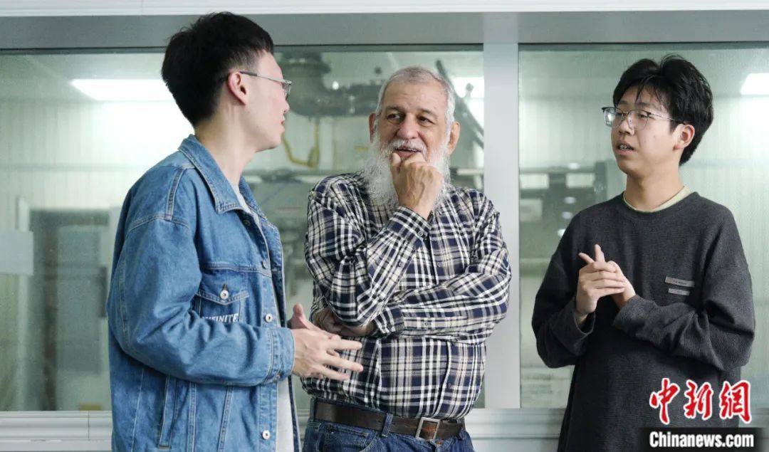 2023年11月,利用实验室午间休憩间隙,裴德乐在电子科技大学接受了中新社“东西问”采访。身着红色卫衣、蓝色牛仔裤的裴德乐精神矍铄,言语间中气十足。