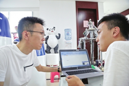当一部分同事下班之后,彭倍依旧会与几名主要的研发人员继续在办公室忙碌。“一个完美代替人工的智能机器人,需要经过反复调试,才能在相应的场合中发挥作用,尤其是在交货之前,我们就会更忙。”彭倍说,2014年创办公司之初,由于没有能够独当一面的员工,很多事情都要他自己亲自去做。