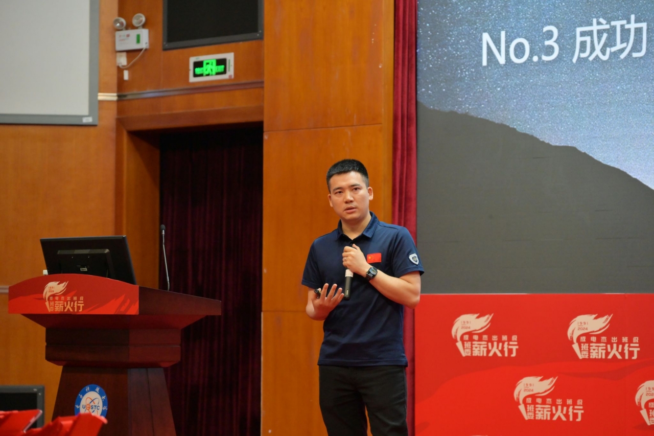 09级1班班长刘建青讲述自己“从成电到美国”这15年的成长故事,他说,成电带给了他人生中的最宝贵的财富:自主学习的能力、组织交流的能力以及自信。他结合自身经历向同学们提出建议:在大学要具有强大的适应能力;要着眼长远目标,将短期目标与长期目标相结合;要学会超越课堂,注重知识拓展与挖掘;要拓宽舒适圈,不畏惧失败与挫折,实现自身持续成长;要学会保重自己,照顾好自己的身心健康。