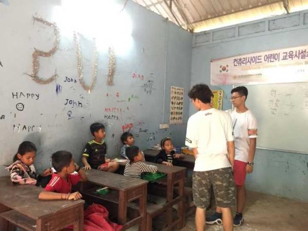 校园设施简陋,由于没有政府的资助,仅靠志愿者的募捐,学校缺少稳定的收入来源,可持续发展面临着不小的困难。校长Thona二十多岁的年纪,高中毕业,英语口语比较流利,业余从事志愿支教工作已有六年多,他在寺庙里跟志愿者学习英语,并由此走上了志愿者的道路。他谈到,现在柬埔寨的互联网和智能手机已经开始普及(街上的确到处可见来自中国和韩国的手机品牌商店),他也可以上网了解世界各地的信息,并热切地向同学们了解中国的社会、手机及支付、互联网、汽车、高铁、教育、年轻人最喜欢的职业、收入水平等社会发展各方面的情况,言语之中对学校孩子们的教育、柬埔寨的发展前途既充满希望又有些担忧。父辈们亲历的国家动荡让他忐忑,位卑不忘忧国,让同学们深受触动。