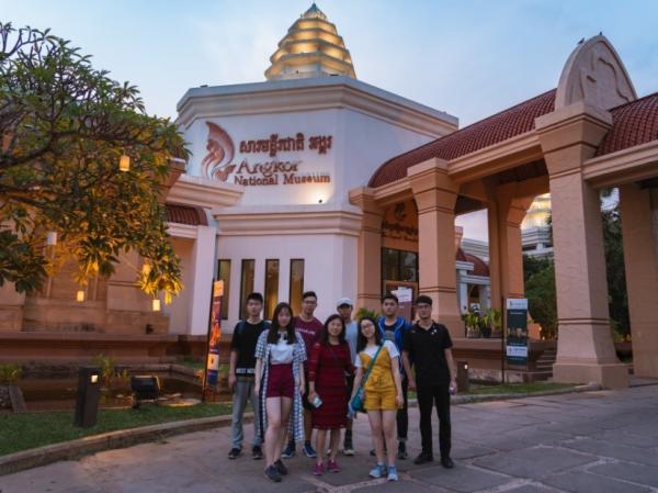 教学之余,同学们走访了暹粒的市井生活,参观了吴哥国家博物馆、小吴哥、大吴哥等旅游胜地。蛇神挡雨、乳海翻搅等佛教传说故事,规模宏大、巍巍耸立在热带丛林之中的寺庙建筑,美伦美奂的石雕艺术,每一处被岁月点点风化的斑驳痕迹,都让同学们赞叹柬埔寨辉煌灿烂的历史文明。虽然历经各种苦难,人民生灵涂炭,文明饱受摧残,但是今日的柬埔寨正从患难中焕发新生。一栋栋新楼从嘈杂混乱中拔起,一群群游客给这片饱经风霜的土地带来勃勃的生机。