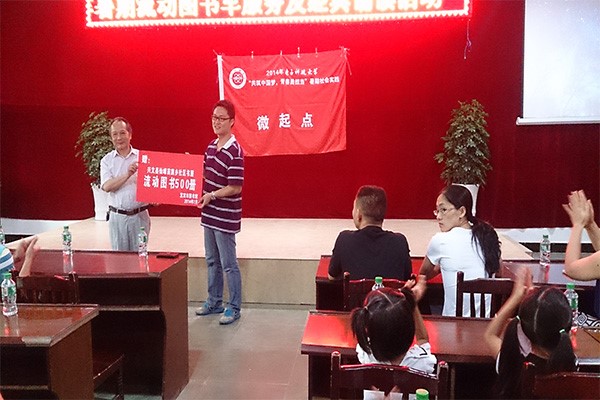 7月22日,通信微起点支教队按照计划与宜宾市图书馆合作,举办了“为山区孩子送知识”的流动图书车活动。宜宾市图书馆馆长曾文代表图书馆向仙峰乡捐赠图书500册。之后,在微起点实践队队员的带领下,孩子们走进流动图书车,津津有味地品读里面的书籍,在知识的海洋里畅快的遨游,度过了充实的上午。
