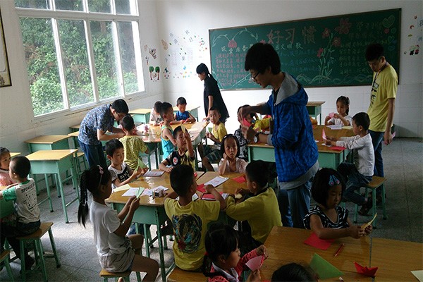 “微起点”实践队的到来对仙峰乡的孩子们来说伴随着无限青春的热情和与众不同的新鲜感。老师们耐心地演示,孩子们认真地模仿,不一会儿,无数个振翅欲飞的千纸鹤与含苞待放的纸百合就诞生在孩子的小手中。拿着自己亲手做出来的手工作品,孩子们说不出的高兴与快乐;英文课上,第一次接触英语的孩子们目光中带着新奇与渴望,仔细听着老师的讲解,认真模仿着老师的发音,像一个个探索未知世界的冒险家;人文地理课上,来自全国各地的实践队成员耐心地给孩子们介绍各自家乡的故事,孩子们听得津津有味,梦想着有朝一日可以走出大山看看外面的世界……还有舞蹈课上孩子们乐此不疲地学着各种舞姿,语文课上声情并茂地朗诵着新学的诗词,音乐课上天籁般的童声合唱,体育课上活力四射的拔河比赛与贴人游戏……