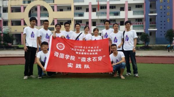 根据学校安排,微固学院围绕“共筑中国梦,青春勇担当”的主题,组织设计了形式多样的各类实践活动,内容丰富,覆盖面广。其中“分得巴适”暑期社会实践队还获得希望工程激励行动公益项目资助。