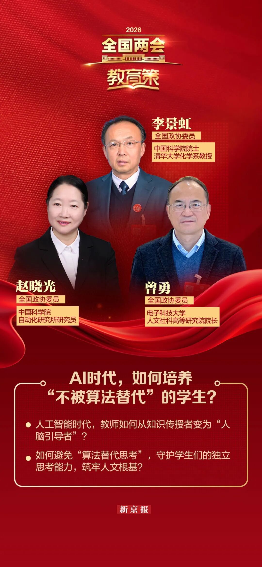 全国政协委员、中国科学院院士、清华大学化学系教授李景虹指出,2025年《关于深入实施“人工智能+”行动的意见》发布,进一步标志着我国人工智能发展进入纵深推进的关键阶段。在这一阶段,人工智能的发展逻辑正在发生深刻变化——知识更新与技术迭代的速度呈指数级增长,传统学科划分与标准化人才培养模式,已难以适应前沿领域对复合型、创新型人才的迫切需求。